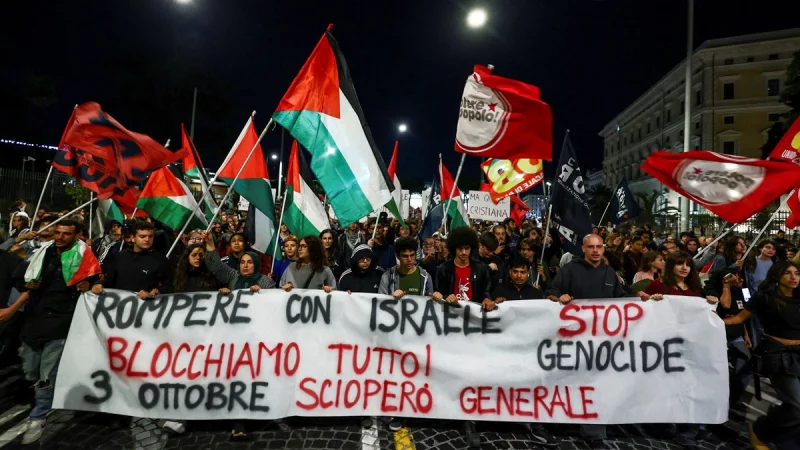 ফ্লোটিলায় ইসরায়েলি আগ্রাসনের প্রতিবাদে ইতালিতে ধর্মঘটের ডাক