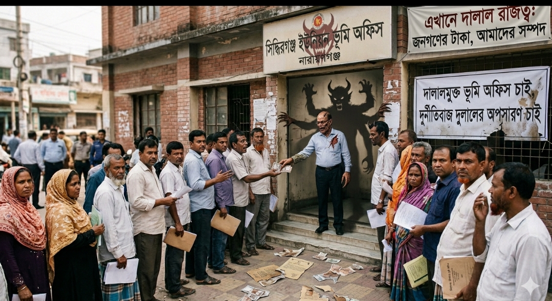 সিদ্ধিরগঞ্জ ভূমি অফিসে দালালের রাজত্ব: ‘দালাল ছাড়া চলে না অফিস’ স্বীকারোক্তি নায়েব দুলালের